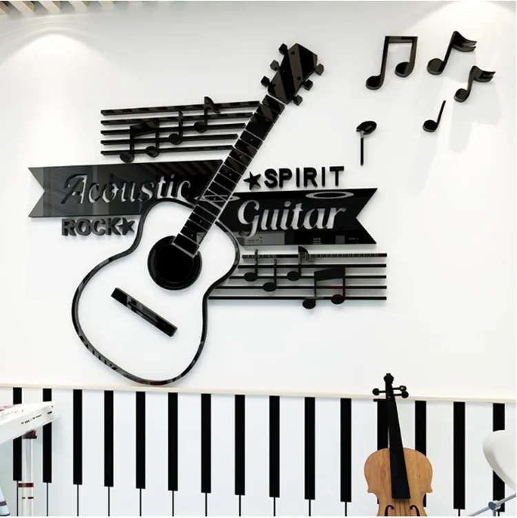 Alat Musik Dekorasi Dinding Gitar Musik Latar Belakang Tata Ruang Kelas 3d Stiker Dinding Cermin Akrilik Hitam Wall Stickers Aliexpress